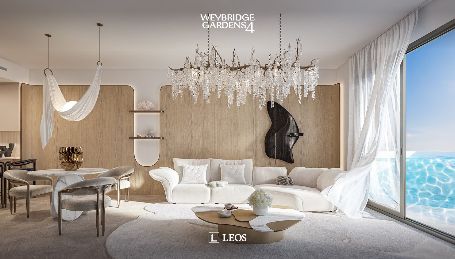 Weybridge Gardens 4 transforms luxury living in Dubai with its petal-inspired design, blending organic elegance with modern opulence. Inspired by Tuscany’s famed hot springs, it features an infinity sky beach, cascading jacuzzis, and world-class amenities, offering 294 exclusive residences, including sky villas. All units includes private pools, for a truly sophisticated lifestyle. Setting a new standard in Dubai’s luxury real estate, where petal inspired architecture meets unparalleled sophistication. Imagine an exclusive rooftop beach oasis and a cascading jacuzzi reminiscent of Tuscany’s famed hot springs, seamlessly blending nature’s elegance with modern design. Inspired by the natural world, Weybridge Garden 4 embraces the theme of blooming, with architectural design drawn from organic forms. Infused with the grace of timeless gardens, offering an exquisite sanctuary for those who seek the pinnacle of refined living.